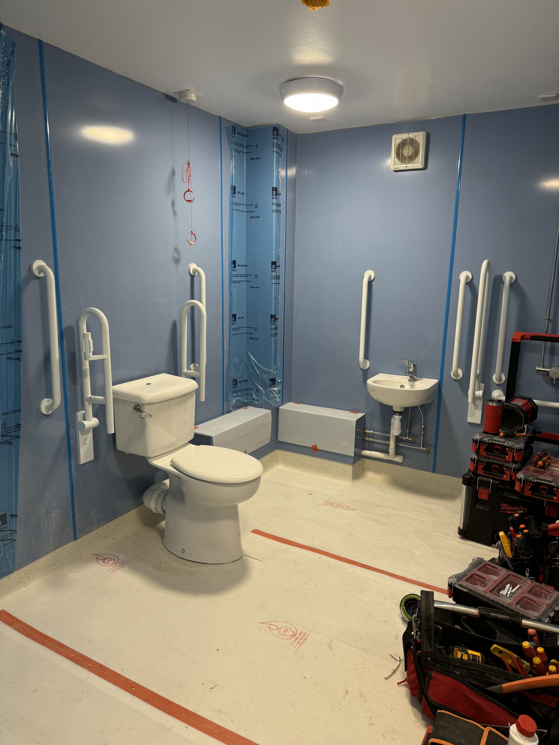 The contract form was JCT Intermediate with a schedule of client amendments. The site was occupied during refurbishment, and due to the nature of the project, work needed to be planned and carried out sensitively, bearing in mind the vulnerable user group.
